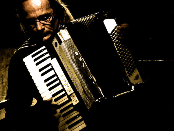 e cela desetletja minevajo, odkar se je še mlečnozobi Bratko Bibič jel ukvarjati z glasbo. Najpoprej z orglicami. Sedemdeseta - in z njimi Bratko - dajo, nadalje, enega izmed najslavnejših bendov, kar jih pozna domovina - Begnagrad. "One of the pioneers of World Music," so veliko pozneje za nazaj ugotovili vrli in učeni švicarski kritiki. Prav v Švici je domovala tudi grupa Nimal, s katero je Bratko nadaljeval udarno pot k dokončni emancipaciji harmonike iz sveta nevarnih stereotipov. V zadnjih dveh desetletjih bodisi sam ali v tem ali onem bendu, v gledališču, na otvoritvi razstave, s potujočim kinom, na klubskem ali velikem koncertnem prizorišču ... Bratko smelo in vztrajno nadaljuje z iskanjem svojega optimalnega štiklca. Za mnoge njegove muzične stvaritve lahko zdaj že rečemo, da jih širše občinstvo rado prepozna, pa čeprav mu sploh ni jasno, kdo in zakaj jih je napisal. Bratku Bibiču je mesto v peterici najkreativnejših harmonikarjev po imenu Accordion Tribe razkazalo svet in utrdilo sloves, da se poslej ne brani niti takih prostorov, kakor sta Dunajska filharmonija ali klub Gromka. Zadnja leta se Bibič - sicer tudi filozof in raziskovalec - poglobljeno ukvarja s preteklo in polpreteklo zgodovino, ki sega zlasti v pionirsko filmsko razdobje, čas Soške fronte in k -izmom, kar so jih proizvedle zgodovinske avantgarde. kontakt: defonija@gmail.com « nazaj komentarji ![]() ![]() |