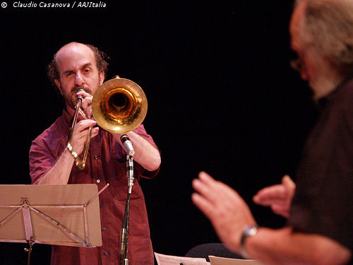 Sebi Tramontana se je našemu občinstvu zapisal kot sodelavec v ad hoc defoničnem triu trombonov, ko je pred leti v Menzi pri koritu mojstril improvizirano igro z Johannesom Bauerjem in Vinkom Globokarjem. Tramontana je pri nas kot muzičist in igralec intenzivno sodeloval tudi s koreografom Iztokom Kovačem oziroma z njegovo skupino En-Knap. Posledično se pojavi tudi v filmu Under my Skin Saša Podgorška. Prvi trombonist slavnega Italian Instabile Orchestra pa je pri nas igral tudi v Slovenski kinoteki (v duu s Paulom Lovensom sta magistralno nastopila h Keatonovi nemi klasiki The General!), spomladi pa smo ga poslušali tudi v Cerknem v odličnem (in dolgoletnem!) triu z Joëlle Léandre in Carlosom Zingarom. Sebi Tramontana, doma iz Rosolinija na Siciliji, sicer pa že dolga leta prebivalec Münchna, je na sceni cenjen zaradi svoje moči, širokega razpona, posebnega zvena, ki ga zna obogatiti s pravi množico dušilcev in prikladnih objektov, predvsem pa ga odlikuje neverjeten smisel za humor in razna performerska presenečenja. Teh zagotovo ne bo manjkalo tudi na pričujočem bogatem nastopu v Gromki.